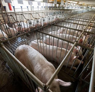Σε πολλές χώρες, συμπεριλαμβανομένων των ΗΠΑ, χρησιμοποιείται θάλαμος αερίου CO2 για την αναισθητοποίηση των γουρουνιών προτού σχίσουν τους λαιμούς τους. Αυτό τεχνικά ονομάζεται «αναισθητοποίηση ελεγχόμενης ατμόσφαιρας» ή CAS και καταγράφηκε για πρώτη φορά στο βίντεο από τους παραγωγούς του ντοκιμαντέρ, Lucent, στα σφαγεία της Αυστραλίας. Αυτοί οι θάλαμοι αερίων βασίζονται σε μερικές σοβαρές παρανοήσεις. Συγκεκριμένα προτείνεται ότι, όπως μπορεί να αναμένεται με το μονοξείδιο του άνθρακα, τα γουρούνια κοιμούνται ήπια, χωρίς να γνωρίζουν τι συμβαίνει. Με το διοξείδιο του άνθρακα, ωστόσο, είναι το τελείως αντίθετο - οι χοίροι χάνουν τη συνείδηση μέσω της αγωνιώδους ασφυξίας.