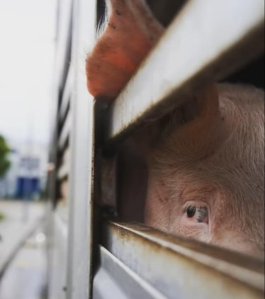 Δεν υπάρχουν νόμοι που να ρυθμίζουν τη διάρκεια της μεταφοράς, ή την παροχή τροφής και νερού για τα ζώα που μεταφέρονται στα σφαγεία. Στην Ελλάδα το 70% περίπου του κρέατος από γουρούνια εισάγεται από χώρες όπως η Ισπανία, η Ολλανδία και η Ιταλία. Οι οδηγίες που υπάρχουν φυσικά δεν επαρκούν και εννοείται πως ποτέ δεν τηρούνται. Τα γουρούνια συνήθως αντιστέκονται και δεν θέλουν να μπουν στα φορτηγά. Οι εργαζόμενοι τότε χρησιμοποιούν συσκευές που παράγουν ηλεκτρικές εκκενώσεις, κλωτσιές και άγριο ξύλο, ώστε να τα αναγκάσουν να μπουν σε αυτά.
