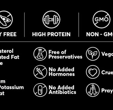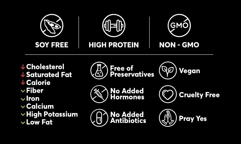 Αποτελούνται από όσπρια υψηλής πρωτεϊνικής αξίας, χωρίς πρόσθετα σόγιας (soy free), χωρίς γλουτένη (gluten free), ενώ είναι πλήρης πηγή πρωτεϊνών, χαμηλή σε περιεκτικότητα θερμίδες, σε αλάτι και σε κορεσμένα λιπαρά.