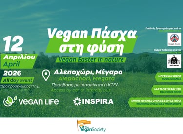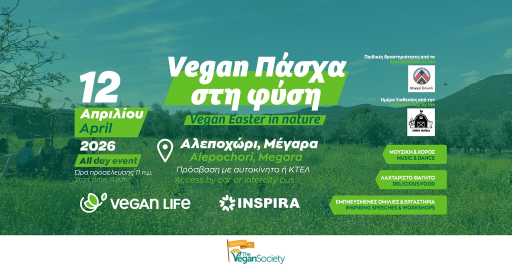 Για δεύτερη συνεχόμενη χρονιά η Vegan Life και η Inspira σε καλούν στα Μέγαρα για να γιορτάσουμε κοντά στη φύση την Κυριακή του Πάσχα, σε μία ημέρα γεμάτη φαγητό, μουσική, χορό, καλή διάθεση αλλά και πολλές δραστηριότητες: Ομιλίες, εργαστήρια μαγειρικής, παιδικές δραστηριότητες και πολλά ακόμη.